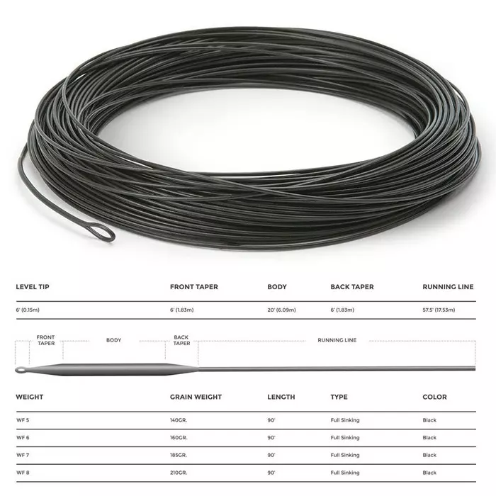 - Type 6: fly line will take lures and wet flies down very rapidly enabling deep lying fish to be targetted effectively.