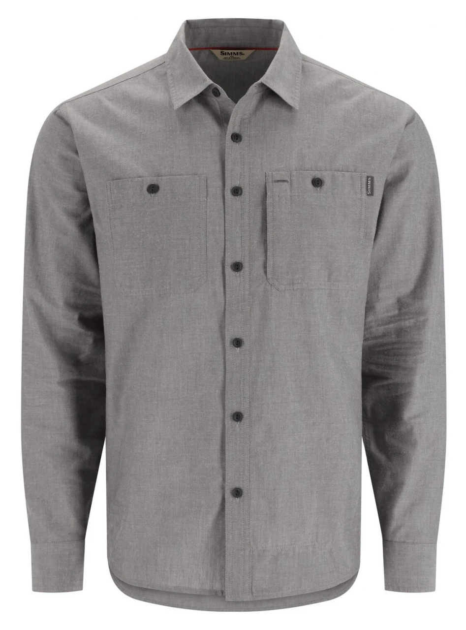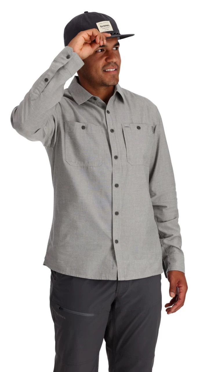 - Classic point collar for a crisp look and casual feel, center back locker loop and button-front closure. Finished with shirttail hem, self-fabric side seam gusset and convenient sunglasses chamois.