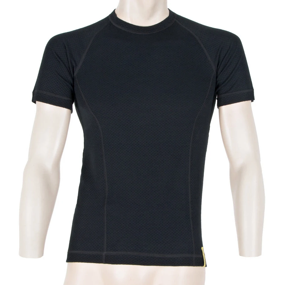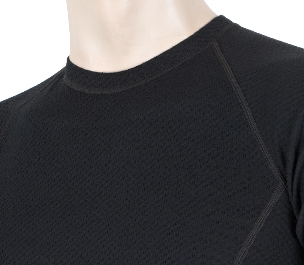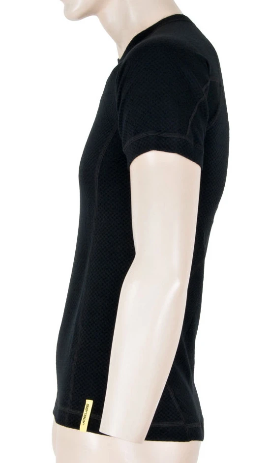 T-shirt made of knitted fabric unique construction combining polyester on the inside and high quality Merino wool from New Zealand. The main advantage of this combination is that the polyester speeds up the transport of sweat to the outer wool layer, which has a unique anti-odor preventing the formation of odors and also has a great thermoregulatory function.