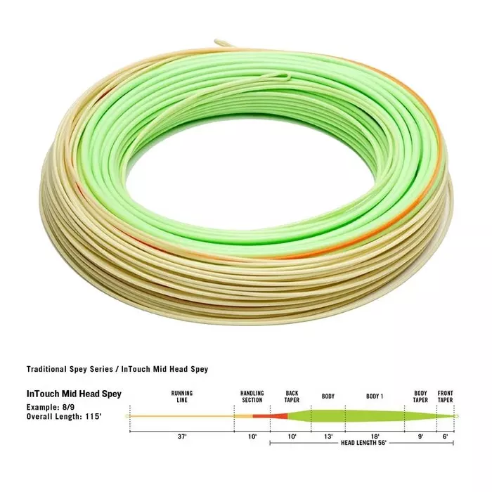 RIO’s InTouch Mid Head Spey line has an easy casting mid length head, with a series of step tapers that unroll with extreme ease and efficiency. Built with RIO’s ultra-low stretch ConnectCore for the very best in performance. Features RIO’s Agent X & XS (Extreme Slickness) technologies as well as welded loops on both ends, and a loading point marker. The perfect line for rods between 13ft and 14ft on mid-sized rivers.