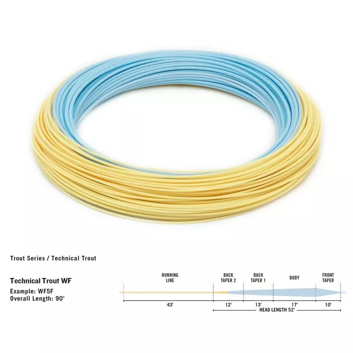 RIO’s TECHNICAL TROUT line features a long, fine front taper for the lightest of presentations and delicacy and is the ideal choice of line when fishing dry flies, nymphs, soft hackles and emergers to tricky eaters at distance. The line has a long head and back taper to increase loop control when carrying long lengths, and for making precise casts to rising fish, while the weight distribution makes it easy to turn over long leaders for technical feeders at range.