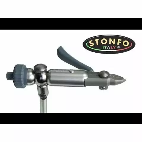 To use simply squeeze the lever and the drop the hook into the jaw. The hook will be held solidly in the vise. The hardened steel jaw is designed to cover hooks ranging from tiny size 28 to mighty 5/0 saltwater hooks with no adjustments. Other features: lever with anatomic handle, 360 rotary action with dual precision ball bearings, double diameter handwheel, adjustable rotary tension, locking position to 0, adjustable tying angle, adjustable height. The lever can be set up for both left and right handed use. Supplied with pedestal base, spring material clip, allen keys and instruction manual.