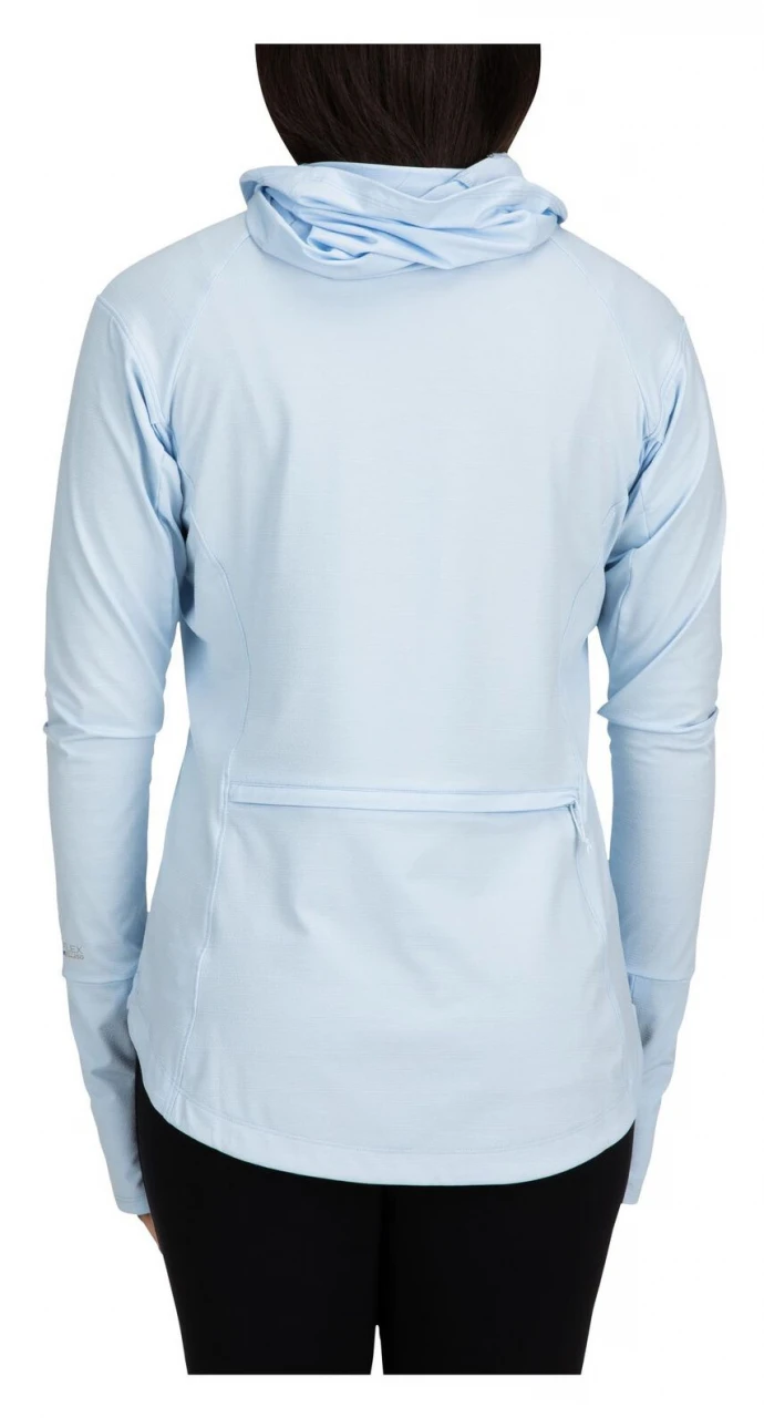 - Sleeves built with extended cuff lengths and thumbholes work with you while casting or poling and provide back of hand sun protection